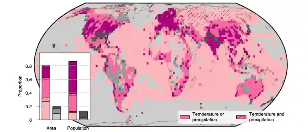 汇总所有这些研究的结果将表明,世界上绝大多数地区,超过80% 的土地面积,世界 85% 的人口居住的地方,目前正在经历气候危机的影响。尽管这个百分比数字已经很大了,但研究人员认为这个数字实际上更高。
