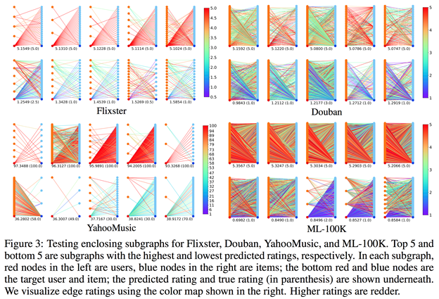 。IGMC为每一个(user, item) pair提取一个包含子图(enclosing subgraph),并用图神经网络(graph neural network)训练一个由子图结构映射到用户对商品评分(rating)的回归模型。