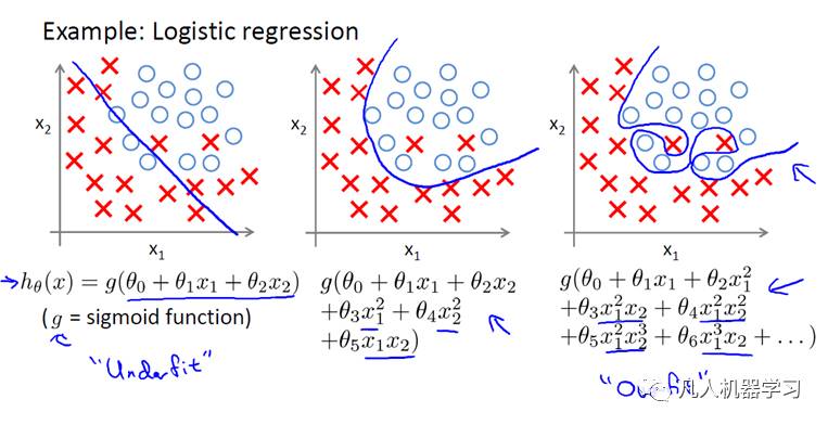 同时如果我们没有足够的数据集(训练集)去约束这个变量过多的模型,那么就会发生过拟合。