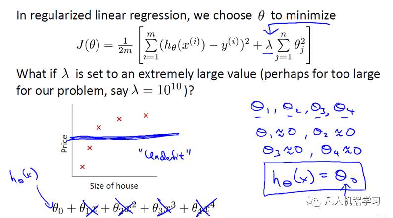 在正则化线性回归中,如果正则化参数值 λ 被设定为非常大,那么将会发生什么呢?