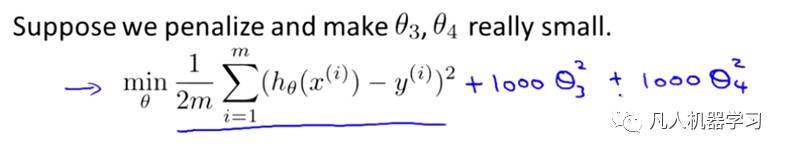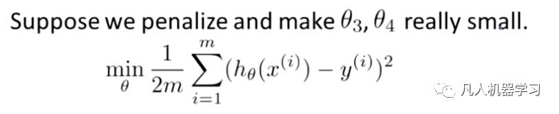 让我们考虑下面的假设,我们想要加上惩罚项,从而使参数 θ3 和 θ4 足够的小。