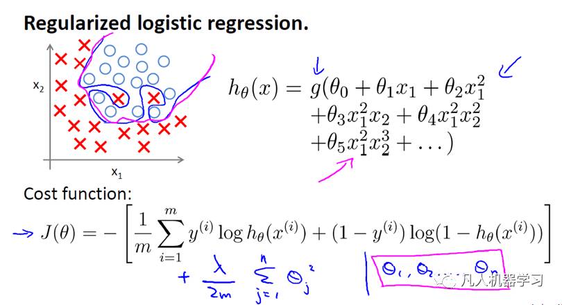 在接下来的视频中,我们将把这种正则化的想法应用到 Logistic 回归,这样我们就可以让 logistic 回归也避免过度拟合,从而表现的更好。