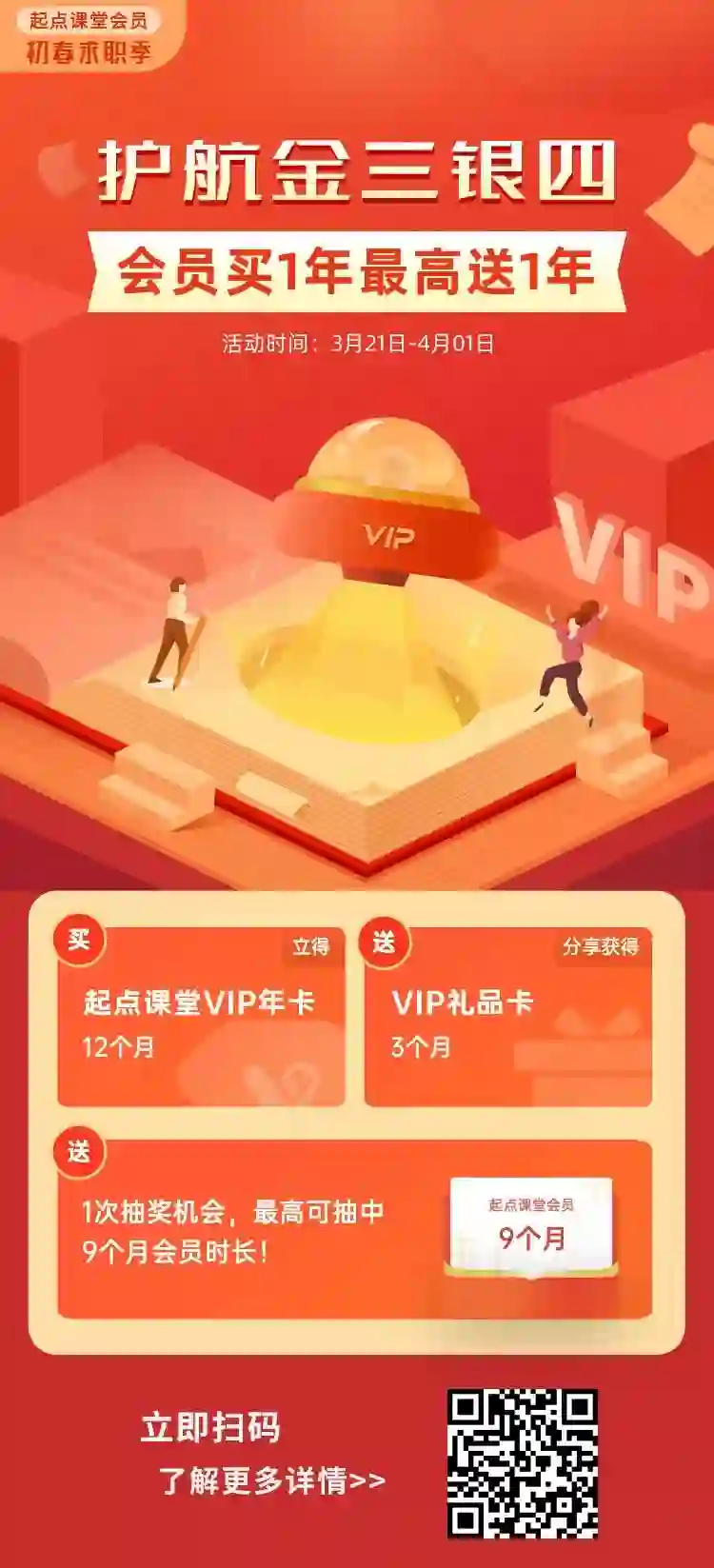 为此起点课堂会员特意准备了护航“金三银四”活动「会员买1年最高送1年!」为你的职场保驾护航!