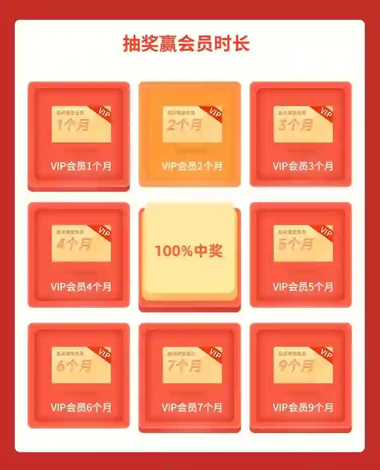 是的,你没看错,就是这么豪!会员时长任你抽,抽中几个月就是几个月!立即到账(Ps:如果是高级会员用户,对应增加高级会员时长)
