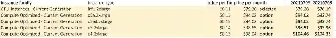 我们使用 AWS On-Demand 和 Spot 实例的组合来运行在 8 个 CPU 和 16GB 内存上运行的应用程序。然后我们决定用 CAST AI 来检查配置是否需要优化。这个平台推荐迁移到 INF1 的 Spot 实例。不过,这不是一个昂贵的、ML 专门的 GPU 实例吗?事实证明,当时那个实例实际上比我们使用的通用计算实例便宜。如果没有自动化,我们就会失去这个隐藏的宝藏。