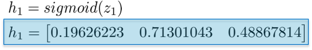 Sigmoid 函数防止隐藏层中的数字落到 0-1 的范围之外。结果就是一个神经激活的数组,h_1 = Sigmoid(WX)。