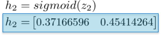 这一步的目标就是把输入变量 X 向前传递到网络的每一层,直至计算出输出层 h_2 的向量。