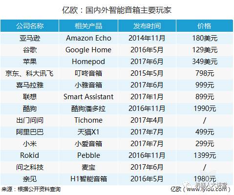 近两年,亚马逊Echo的出现引爆了智能音箱市场。据统计,亚马逊Echo在2016年销售量超过650万台,预计2017年超过1000万台,继亚马逊之后,谷歌发布Google Home智能音箱,苹果也发布HomePod智能音箱。