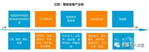 一款智能音箱,经过最上游的OEM/ODM厂商,到芯片、技术服务商和内容厂商之后,产品基本成型,最后进入渠道商。