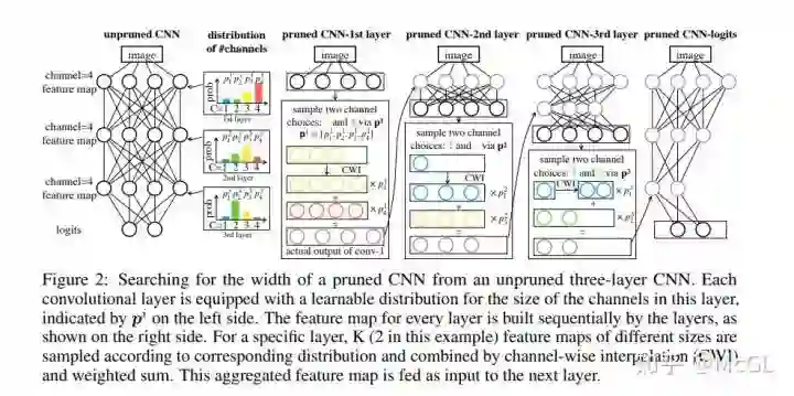 剪枝后网络的宽度和深度根据每个分布中网络大小的最大概率得到。 这些参数是通过knowledge transfer从原始网络中学习到的。 模型在 CIFAR-10、 CIFAR-100和 ImageNet 上进行了实验。