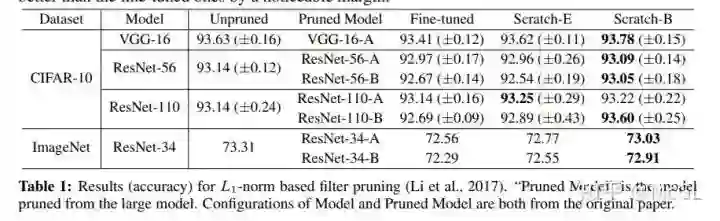 本论文提出的网络剪枝方法分为两大类。 目标剪枝模型的结构由人或剪枝算法决定。 在实验中,作者还比较了预定义和自动方法下,from scratch训练剪枝模型和从继承的权重finetune的结果。