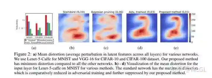 本论文研究了网络潜在特征在对抗性扰动下的畸变(distortion)问题。 该方法通过学习贝叶斯剪枝mask来抑制较高畸变的特征,从而最大化对抗方差的鲁棒性。