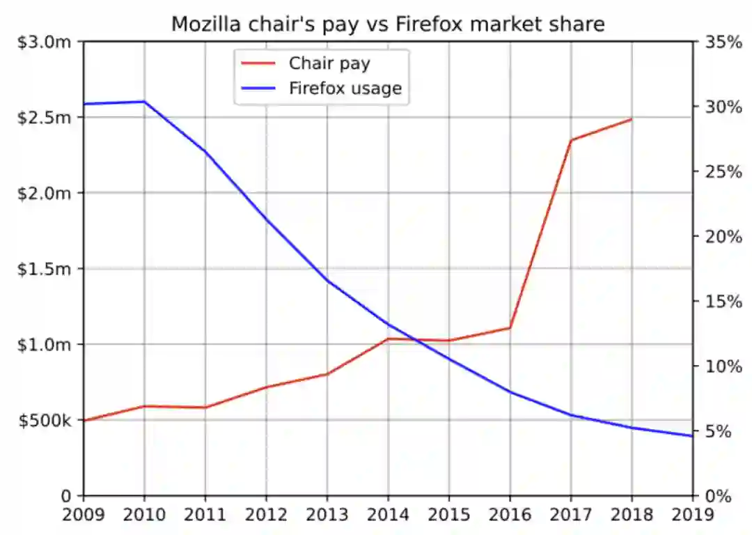 图:Firefox主席要求的薪水与每年损失的用户数量之比