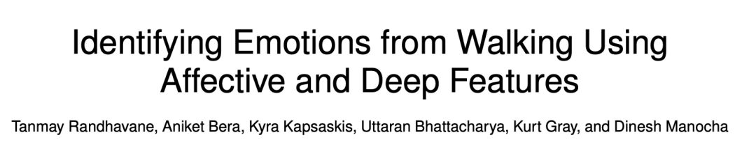 利用这种身体语言,教堂山大学和马里兰大学的研究人员最近开发了一种机器学习方法,可以从一个人的步态中识别人的感知情绪(例如,积极或消极,平静或精力充沛)。研究人员称这是第一种此类方法,并且在初步实验中取得了80.07%的准确率。