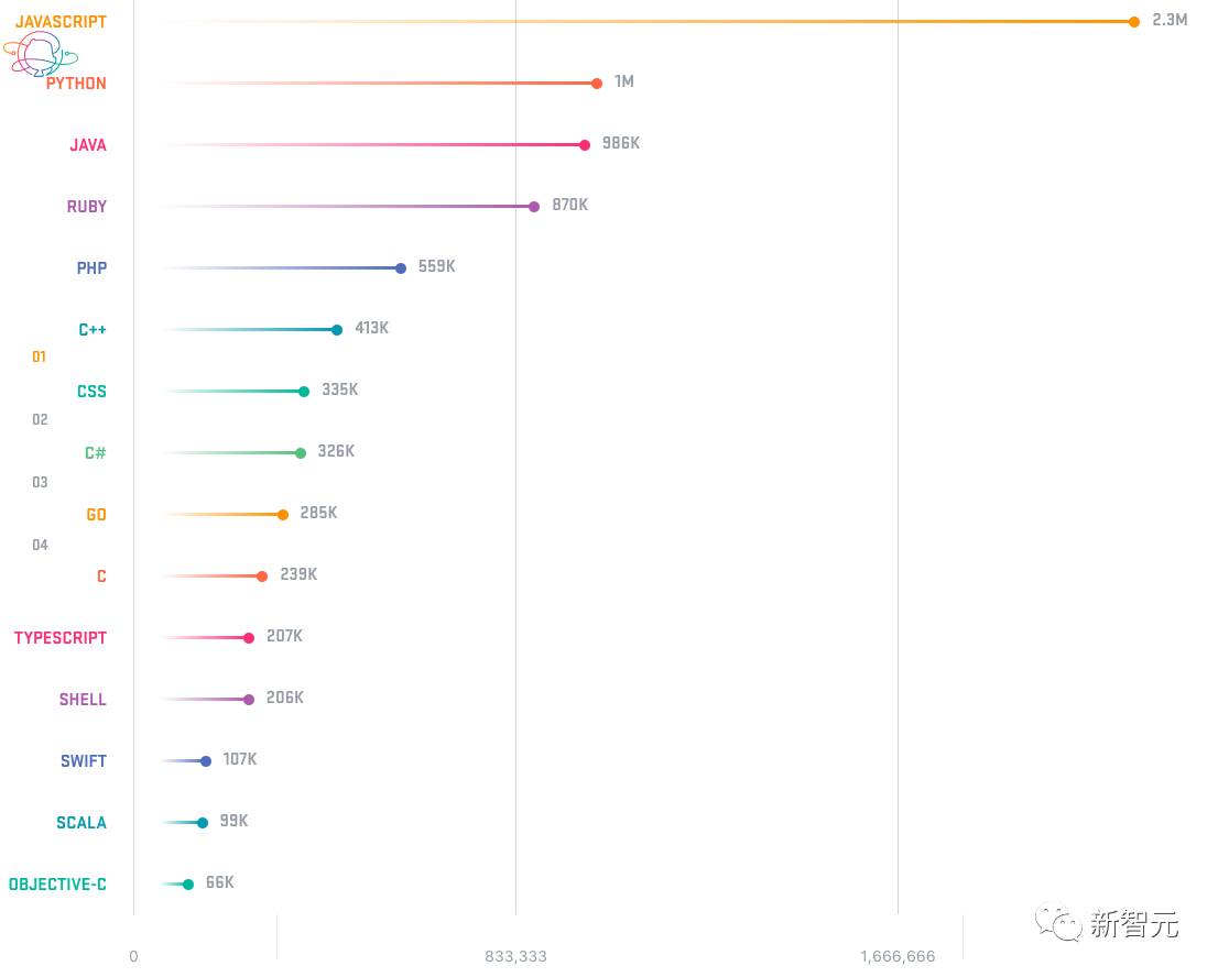 GitHub上的开源项目共使用337种编程语言——JavaScript是使用最多的语言。