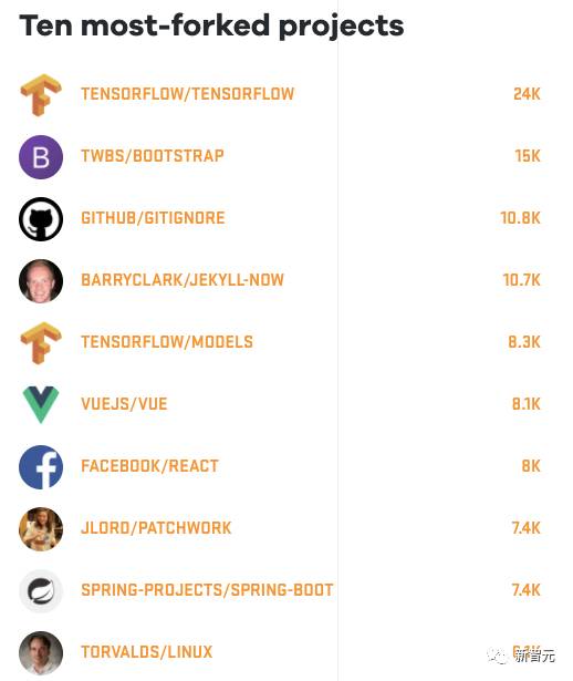 这个列表不包括MOOC课程,例如coursera上一项已经有超过10万fork的R语言编程作业(rdpeng/ProgrammingAssignment2)。