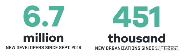 自2016年9月以来,有670万开发者新加入GitHub,以及45.1万新的组织,包括在今年初搬到GitHub的Python(github.com/python)。