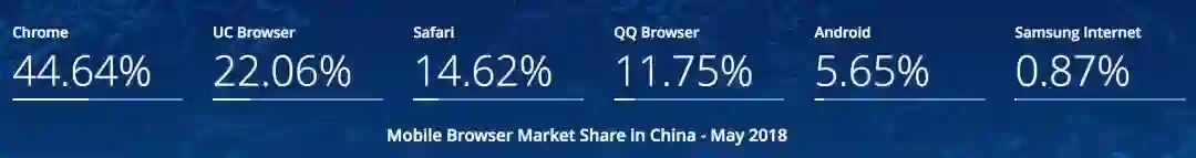 至于国内的移动端浏览器市场,UC 浏览器以 22.06% 击败 Safari 。Firefox 因份额太低,未计入统计。