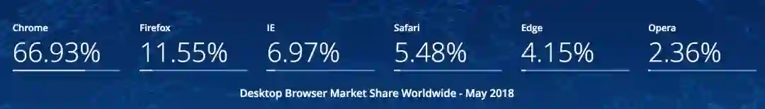 单看桌面浏览器的数据,Chrome 不用多说,第二名和第三名则换成了 Firefox 和 IE。