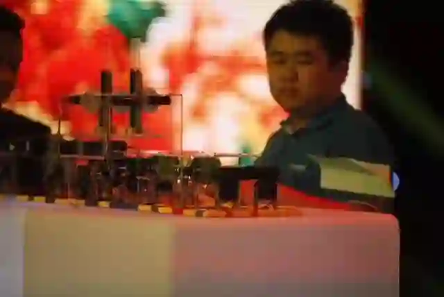 来自北京乐博乐博教育科技有限公司的老师和孩子们,现场让叠纸飞机、抽陀螺、搭积木这些原本传统的童年玩意儿,穿上了科技的外衣。 一张纸通过小巧的折纸机瞬间变成纸飞机并飞上天空,原本木质的陀螺如今已经实现自动旋转,一块块彩色的积木通过孩子们的拼插,变成了彩色的旋转木马。