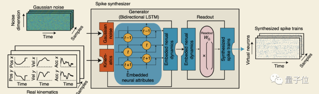 研究人员先用双向LSTM网络设计了GAN中的生成器和鉴别器,用采集到的神经数据加上随机高斯噪声来合成新的数据。
