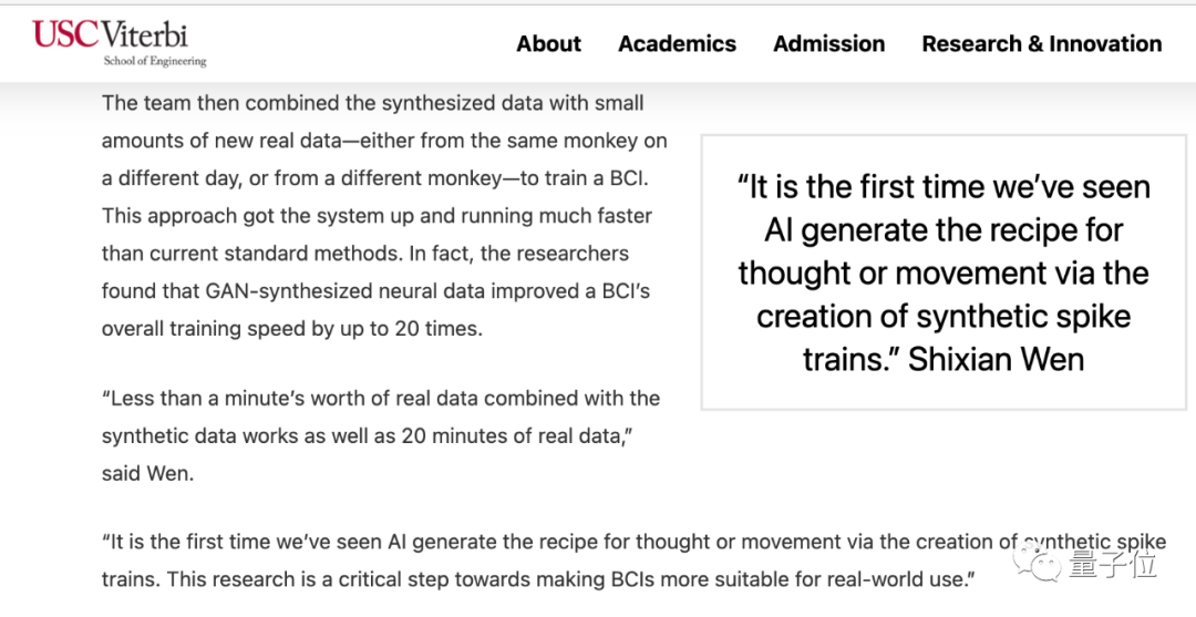 论文的一作温士贤本科毕业于北京交通大学,现在是一名南加州大学维特比工程学院的博士生,就读于计算机系,主要研究方向是AI和神经科学。