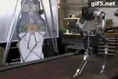 操作者需要坐在装有传感器的椅子上,戴上VR头显和数据手套等设备,再进行动作。通过机器人身上的29个扭矩伺服模块,和椅子上相对应的16个感应模块,机器人就能够实时对操作者的动作进行模仿。