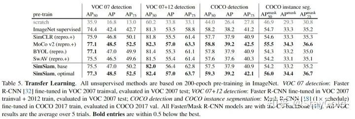 在目标检测任务上迁移,发现本文的方法对比其它方法也是有竞争力的: