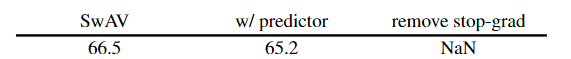 SimSiam可以视为SwAV去掉online clustering。作者同样对SwAV做了一些对比: