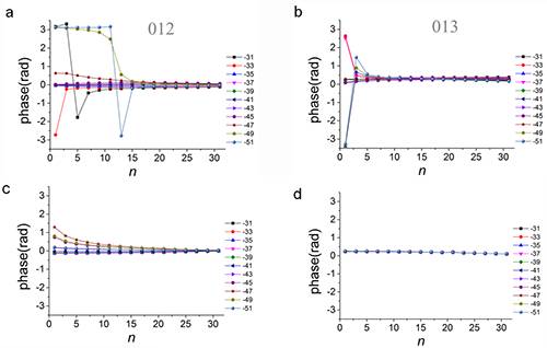 近期,常云杰在葛炳辉副研究员,王玉梅副研究员指导下,以AlN为模型使用数值模拟方法研究了不同厚度不同成像条件下衍射束的相位。研究发现对于普通电镜成像,当样品比较薄的时候,信息极限以内的012衍射斑的相位随着离焦量的变化而变化,但当样品厚度较厚时相位近似为一个常数,且与物体的结构因子的相位基本一致,如图1a所示。通过分离线性和非线性部分发现,当样品较薄时非线性部分的影响可以忽略,线性部分的相位随着离焦量的变化而变化;而当样品较厚时,非线性成像的影响占主导,且非线性部分的相位近似为一个常数,接近结构因子,如图1c所示。对超出线性信息极限的更高频的013衍射的研究可以得到类似的结论,且由于频率更高,013衍射的相位在样品更薄的时候就趋于常数,即对于高频的衍射束,其非线性效应在同等样品厚度下比低频衍射束更显著。利用超出线性信息极限的衍射点013的信息进行结构解析,可分开AlN<110>方向投影的Al-N的哑铃对。也就是说,得益于非线性信息的存在,即使普通的透射电子显微镜也可以得到更高分辨率的结构信息。虽然这其中部分机理还不是很清楚,但提供了一条新的思路,即“变废为宝”,充分利用不可避免的厚样品的非线性效应,为我所用。以上结果发表在Microscopy(2017)。