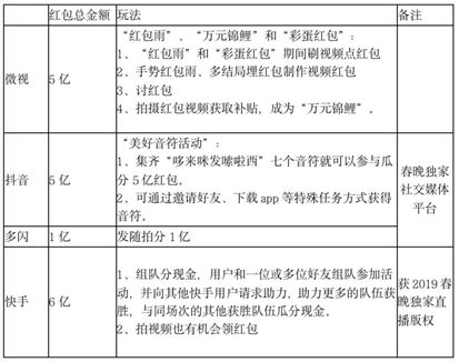 今年春节,微视、抖音、快手短视频三大巨头将战火蔓延至春节红包。抖音成为了春晚独家社交媒体平台,快手则拿下了春晚独家直播版权。