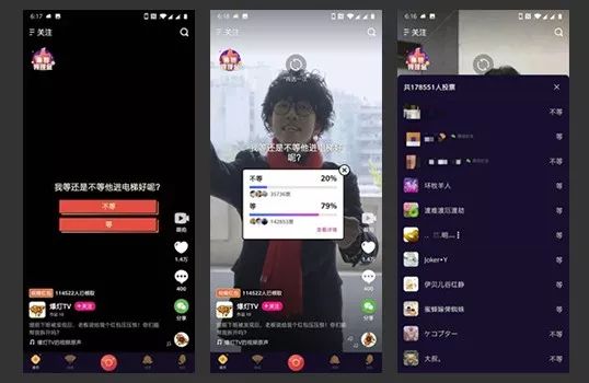 除了系统个性化推送,用户有权利在微视频道中自主选择内容;即使没有关注,微信好友拍摄的视频会出现在微视中;刷视频的过程中,突然出现了一个剧情选择功能,选完之后还会显示自己的微信好友都选了哪一项……