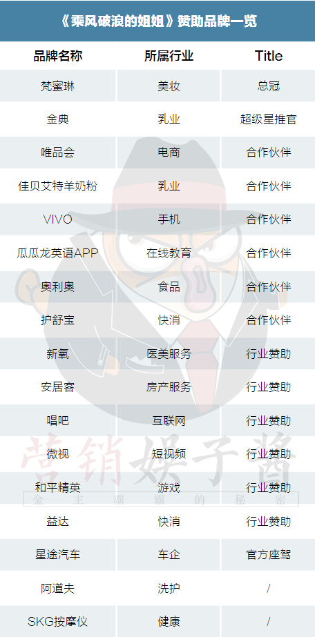 事实也证明权益的多少并不意味着品牌一定能找到合适的露出机会,关键在于品牌调性与节目的契合度。观察下来,选择《浪姐》的品牌或多或少会存在一定的顾虑。