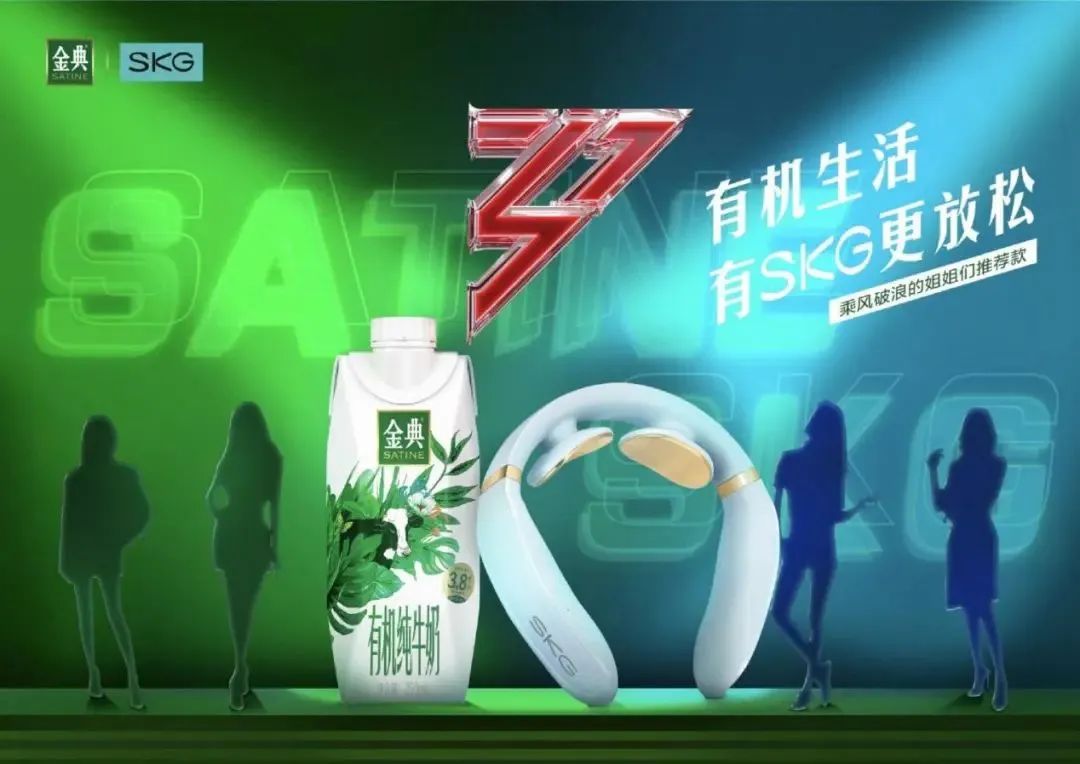 在节目外的联动上,SKG按摩仪与金典进行跨界,打出“姐姐们推荐款”的名号,而在金典的投票通道中,有进行抽奖的环节,SKG按摩仪实际上获得了这一通道的展示机会,可见节目外不同品牌IP间进行联动,也可以收获更多触达不同圈层受众的机会。