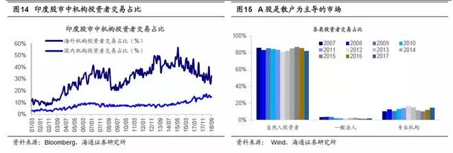 印度股市外资交易占比达35%,A股散户交易占比82%。