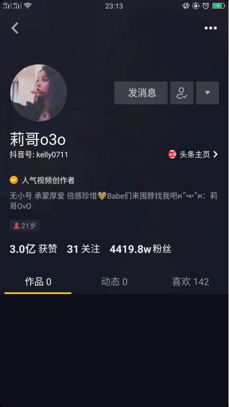 今年春天,一个叫“莉哥o3o”的账号出现在了抖音平台。乘着抖音红利期的浪潮,外表甜美,嗓音独特的莉哥几乎不费吹灰之力就成了新一代的“抖音一姐”。