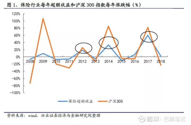 2、保险投资收益率与大盘蓝筹股走势具有紧密的相关性,具有较强的β属性。