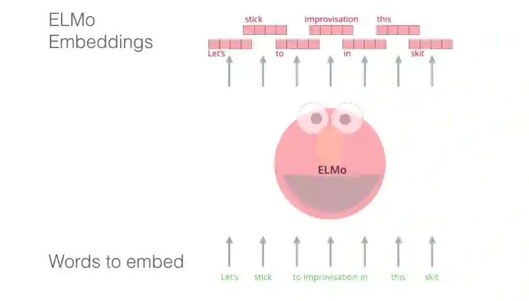 ELMo 没有对每个单词使用固定的词嵌入,而是在为每个词分配词嵌入之前,查看整个句子,融合上下文信息。它使用在特定任务上经过训练的双向 LSTM 来创建这些词嵌入。