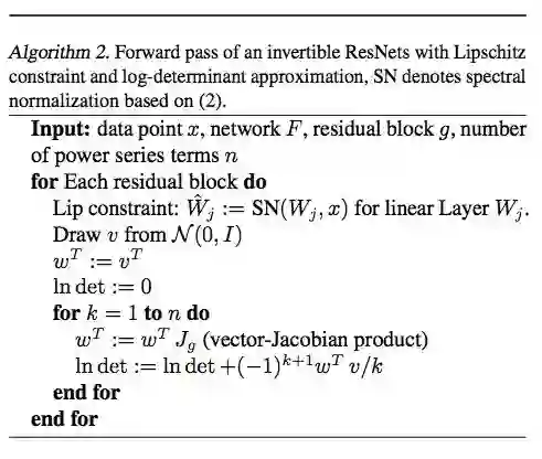 使用 Lip(g) < 1 可使 ResNet 可逆,但我们没有这种可逆的解析形式,不过我们可以通过一个简单的定点迭代来获得,见算法 1。