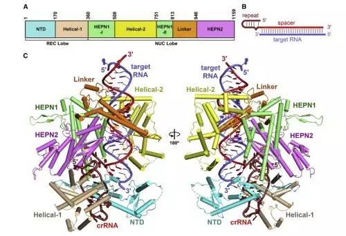 LbuCas13a-crRNA-target RNA三元复合物的晶体结构