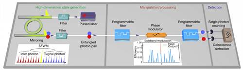 中科院西安光学精密机械研究所与国外多家科研机构合作,在高维纠缠量子集成芯片研究方面取得重大突破。基于微谐振腔中多个高纯度频率模式相干叠加的独特方案,解决了片上高维纠缠双光子态制备与控制的国际难题,证实了利用10级纠缠双光子态实现超100维的片上量子系统。相关成果于6月发表在《自然》上。