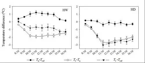 中国科学院西双版纳热带植物园树木年轮与环境变化研究组副研究员林华及其同事以种植在相同环境下的20种元江干热河谷冠层优势植物和18种热带雨林冠层优势植物为研究对象,利用红外热像仪对植物叶片的温度进行研究,并摸索出了“三温法”(叶片温度-无蒸腾叶片温度-参考叶片温度),成功对叶片物理温度效应和蒸腾温度效应进行了原位测量和分离。该研究成果以Stronger cooling effects of transpiration and leaf physical traits of the plants from a hot dry habitat than from a hot wet habitat 为题,发表在Functional Ecology 杂志上。