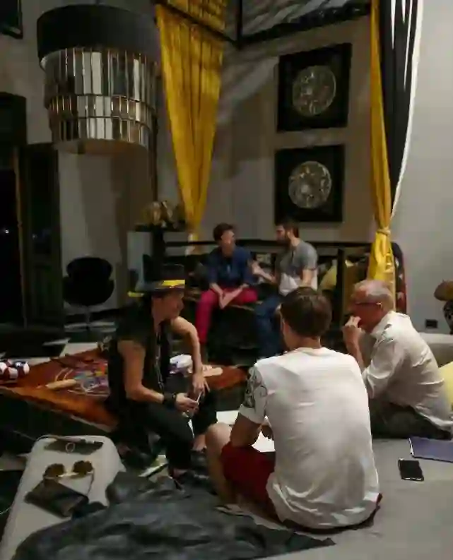 楼下,在Monastery的阁楼里,大约有十几个外国人在里面聚会。那天晚上停水了,所以厕所和水龙头都干了,迈纳躺在一个躺椅上。