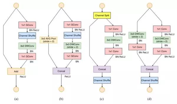 在讲解这篇文章之前,我们首先回顾一下group convolution,它最早由AlexNet提出,当时是由于计算能力不足,然后在ResNeXt中,作者也使用了分组卷积的方式来降低参数量,并增加网络的宽度,效果也很不错!接着我们在说下depthwise convolution, 其在MoblileNet中得到了使用,作者想讲这两种操作相结合,以达到更低参数量的同时精度也能保持的目的。
