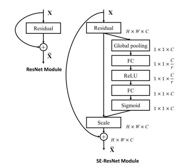 SE的全称为Sequeeze-and-Excitation,SE block并不是一个完整的网络结构,而是一个子模块,可以嵌入到其他的分类或者检测模型,其思想核心是通过网络根据loss函数去学习特征权重,使得有效的feature map权重大,而无效的小一些,从而使得模型精度更高。