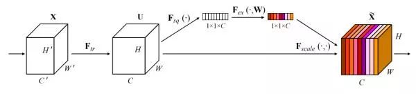 那么SE block是怎么去衡量featuremap的权重呢?其主要包括Squeeze和Excitation两个部分,下面是其结构图: