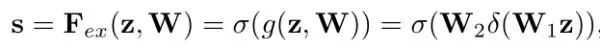 3. 操作:为了更好的利用上面操作产生的全局信息,我们必须遵守两个标准,第一,他必须灵活,即在通道之间增加非线性。第二,要保证通道间的互斥关系,卷积核不可以重复了,因此进行两次激活函数。