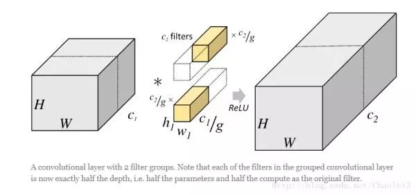 我们可以明显的看出,经过分组卷积后,参数量减少了,举一个例子,假如一个卷积层输入通道为256,输出通道也为256,正常卷积的话,参数量为256x3x3x256。但是如果进行分组卷积且组数为8的话,那么每个组卷积的输入和输出通道均为32,共8组,那么参数量为8x32x3x3x32,参数量降低了8倍。然后将每个组的输出进行concate,这样可以增加卷积核之间的相关性,并防止过拟合。当然这个分组处理的方式还很多,不限于concate。