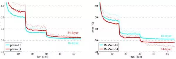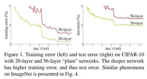 ResNet由何凯明等人提出,为了去构建更加深的网络而提出的。从历届ImageNet冠军看出,神经网络的层数是越来越多,那么更深的网络其性能就更好么?实验发现并不是这样,当网络层数过多后,会出现梯度消失的问题,从而网络会饱和导致精度下降。