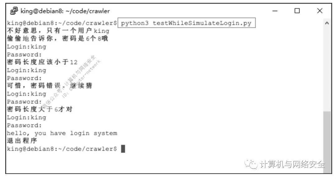 Linux终端登录就是一个类似while循环的示例。下面模拟Linux终端登录,编写testWhileSimulateLogin.py。打开Putty连接到Linux,执行命令:
